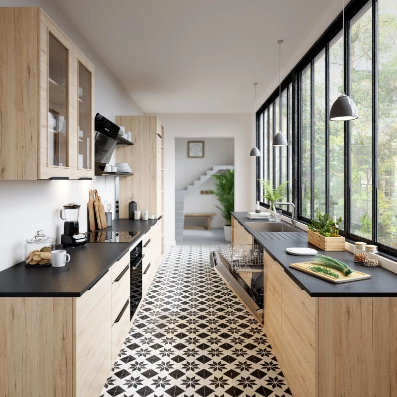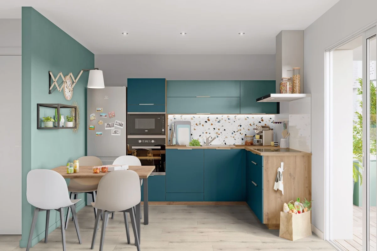 La gamme Smart de SoCoo’c comprend meubles bas, plans de travail et façades personnalisables. Dès 2000€, cuisine complète avec électroménager. Les configurations optimisent chaque mètre carré, idéales pour les studios ou petits appartements, sans négliger le style contemporain.