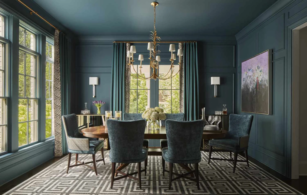 Le “Color Drenching”, littéralement “tremper dans la couleur”, consiste à habiller une pièce entière d’une seule et même teinte : murs, boiseries, plinthes, plafonds, et parfois même les meubles ou les accessoires.