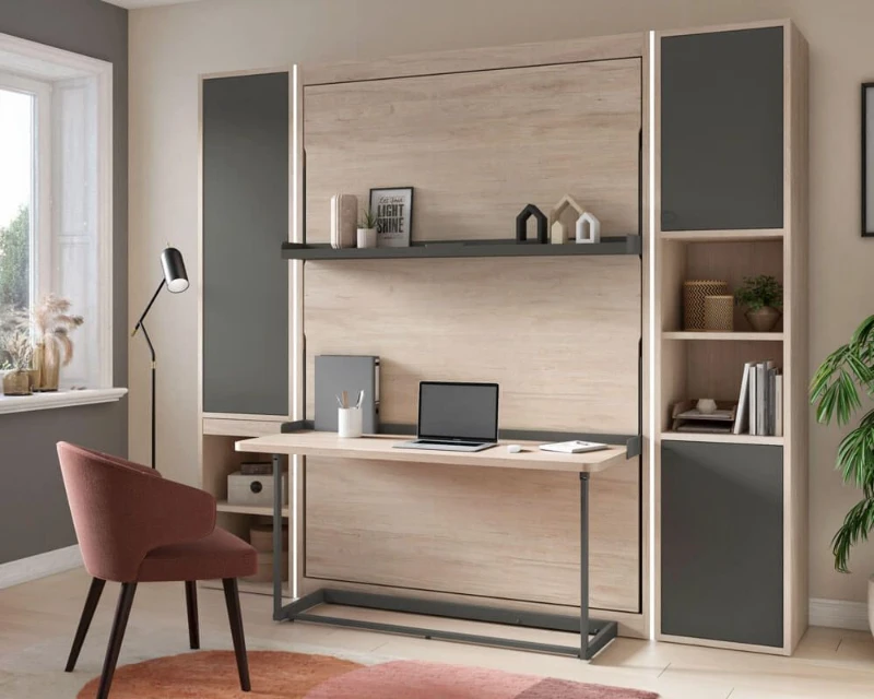 Un lit qui se range dans la journée, c’est idéal pour les petits espaces. Il disparaît dans une armoire ou contre un mur. Parfait pour une rénovation studio, il libère l’espace pour d’autres usages. Optez pour une façade en bois naturel pour une allure simple. Ou choisissez une teinte terracotta, à associer à des draps clairs pour une chaleur subtile. Certains modèles offrent même un bureau intégré. Cette polyvalence transforme votre chambre en un lieu multifonction.