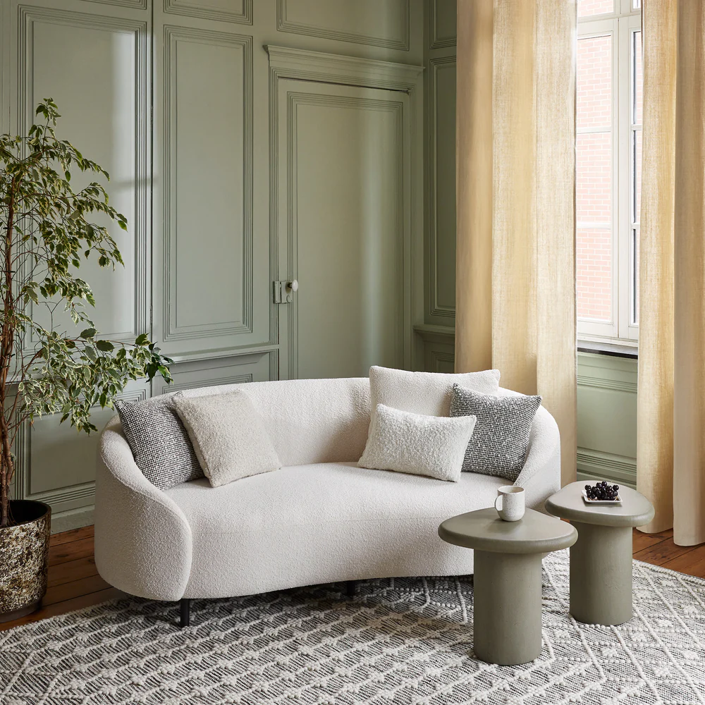 Le canapé n’est pas seul. Tables basses, tapis et luminaires viennent compléter son style et structurer l’espace. Une table basse ronde favorise la convivialité, un tapis met en valeur le canapé et définit le coin détente, et des luminaires bien choisis illuminent le tout avec douceur.