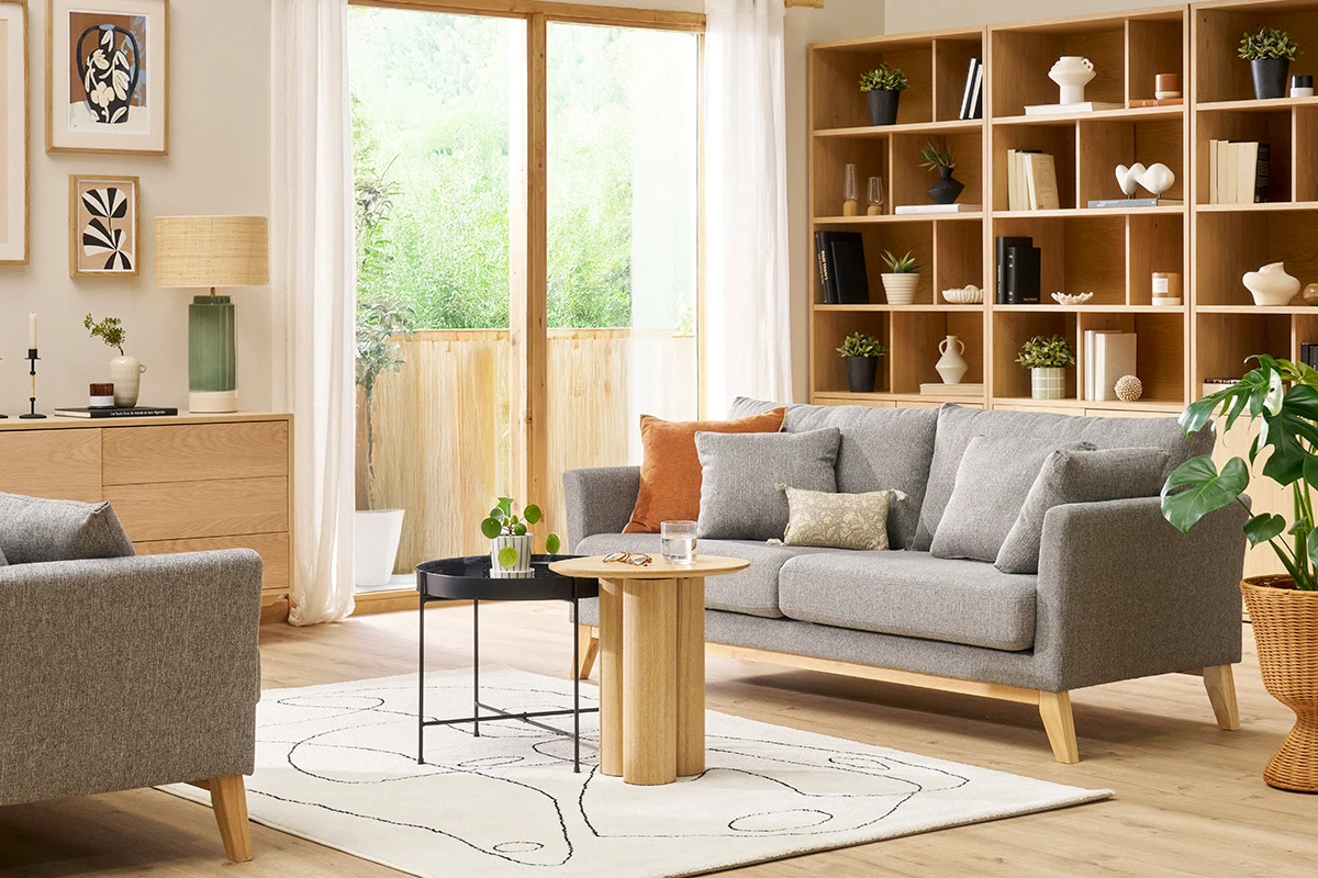 Le style scandinave mise sur la simplicité et la lumière. Les lignes épurées, les pieds en bois clair et les coussins aux couleurs douces créent un salon apaisant et chaleureux. Ce type de canapé apporte élégance et confort tout en restant fonctionnel.