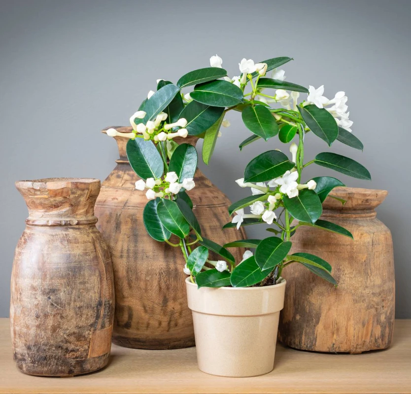 Le jasmin, une plante courante dans les régions orientales, est connu pour ses petites fleurs blanches et son parfum captivant très distinctif. Habituellement mis en pleine terre, ce petit buisson demeure néanmoins un précieux compagnon pour les espaces intérieurs. Pour faire pousser du jasmin, sélectionnez un pot avec un bon drainage et positionnez le près d’une fenêtre exposée au soleil. Cette plante aime la lumière forte mais indirecte et nécessite un arrosage fréquent sans surcharge, ce qui la rend parfaite pour les espaces de vie. Pour favoriser une croissance vigoureuse et particulièrement une floraison généreuse qui vous offrira un parfum captivant, envisagez de le couper légèrement une ou deux fois par saison.